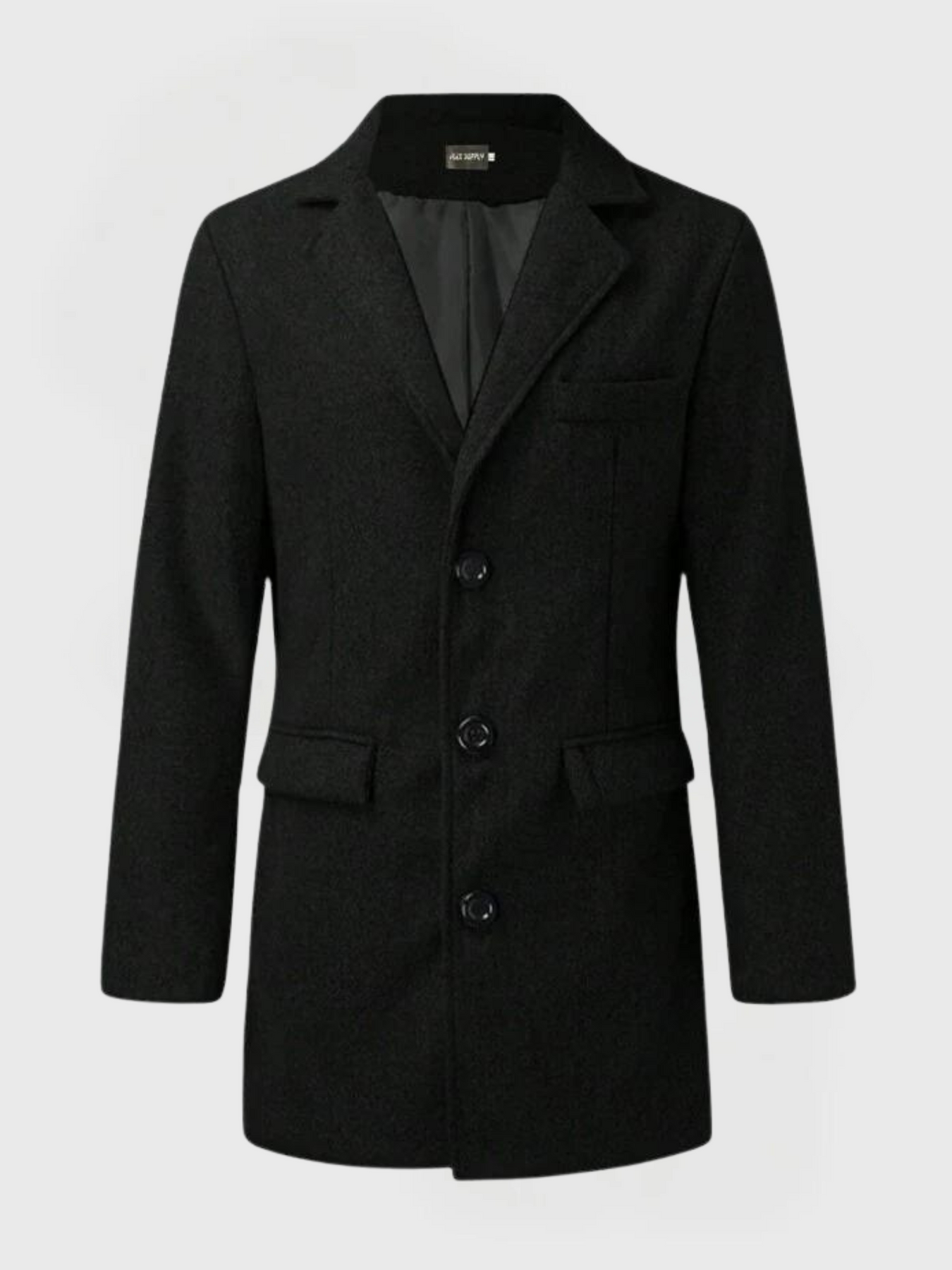 Der Herren Mantel Mit Klassischen Revers | Lang ist ein lang geschnittener Mantel für Herren mit einem klassischen Reverskragen. Das Modell zeigt klare Linien und eine strukturierte Passform, die für formelle oder legere Outfits geeignet ist. Er kann über Hemden, Pullover oder Anzüge getragen und mit Hosen oder Jeans kombiniert werden. Dezente Taschen und eine Knopfleiste vorne ergänzen das Design.